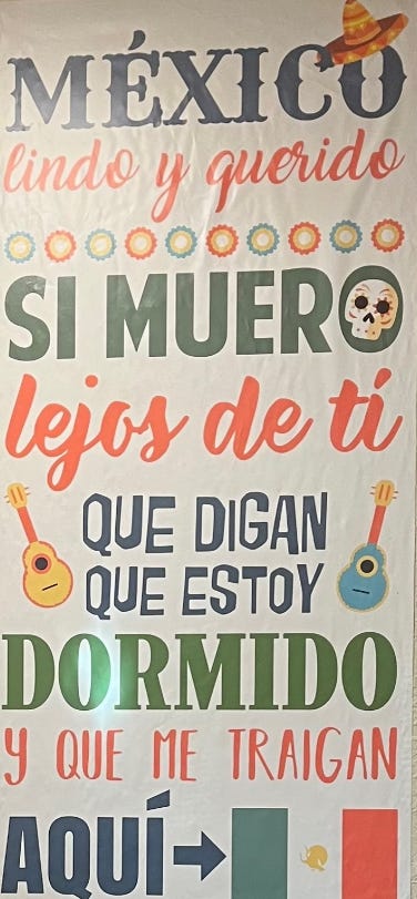 “Mexico, beautiful and beloved If I die far from you Let them say that I am sleeping And that they bring me here